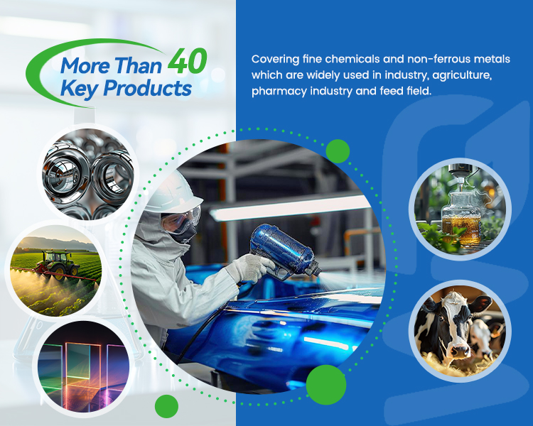 W&Q owns key products of more than 40 covering fine chemicals and non-ferrous metals which are widely used in industry, agriculture, pharmacy industry and feed field.