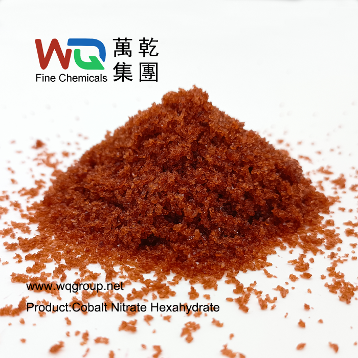 4. Property: Cobalt(II) nitrate hexahydrate (Co(NO₃)₂·6H₂O) is a hydrated inorganic salt that forms reddish-pink deliquescent crystals at room temperature. It is the most stable and commercially prevalent hydrate form of cobalt nitrate, containing six water molecules in its crystal lattice.
