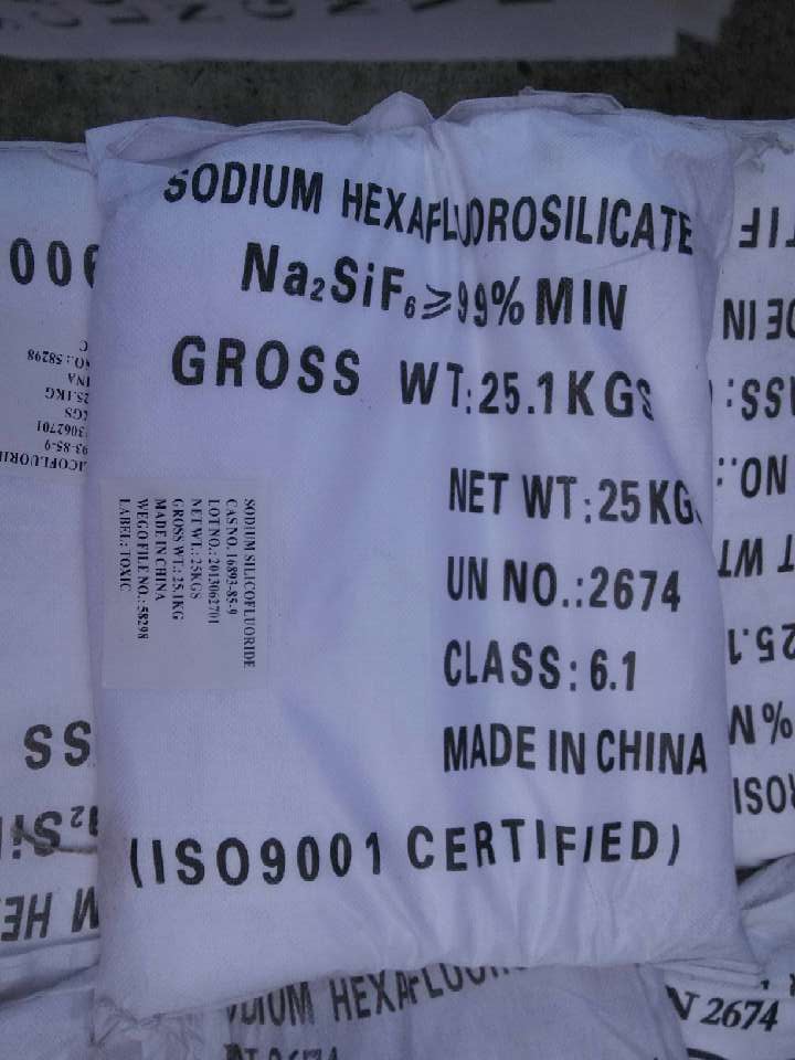 W&Q's Sodium Silicofluoride is a highly versatile inorganic compound widely used in industrial applications, easily recognized by its white crystalline powder appearance. Its chemical formula is Na₂SiF₆. This stable salt is slightly soluble in water, and serves as a milky agent and fusing agent for glass and enamel, wood preservative, agricultural insecticide, hygroscopic agent for acid-resisting cement, coagulation accelerator in natural emulsion products, additive in electroplating, stuffing agent in plastics, in pharmacy, fluorinating treatment for drinking water, and for man-made crystals and sodium fluoride production.